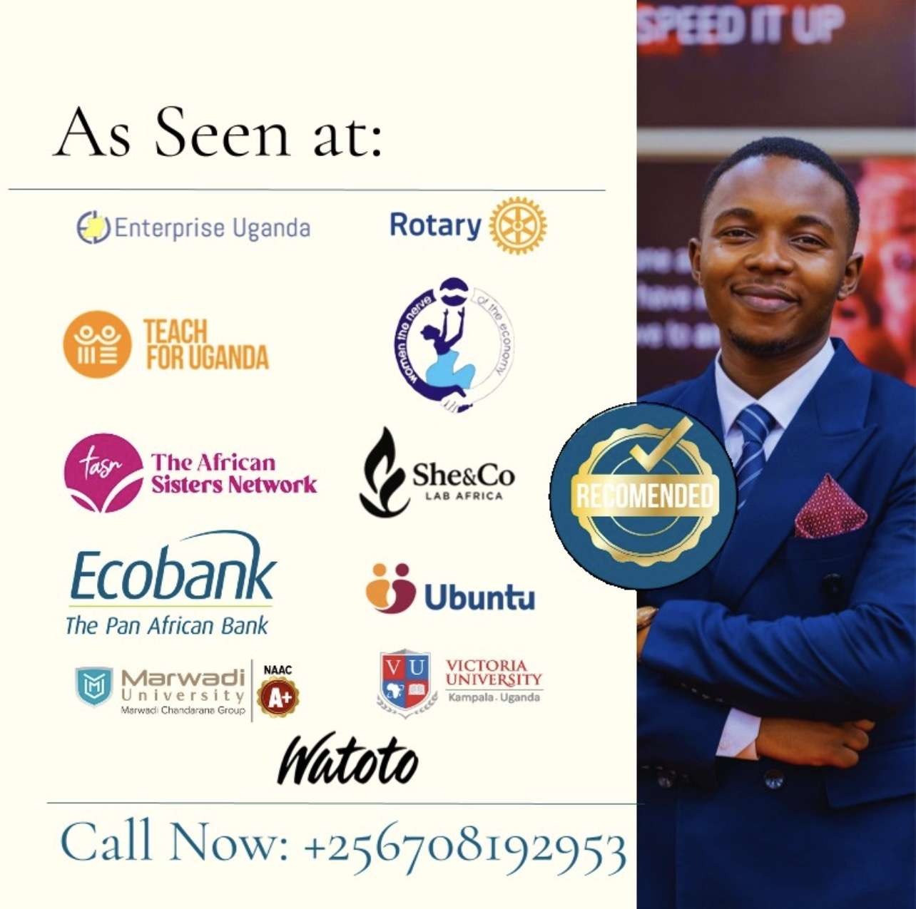 His work with organisations ranging from Ecobank Uganda and Watoto Schools to Teach For Uganda, Victoria University Kampala, The African Sisters Network, and the Tony Elumelu Foundation reflects a quiet but consistent pattern: translate knowledge into operational capability.
