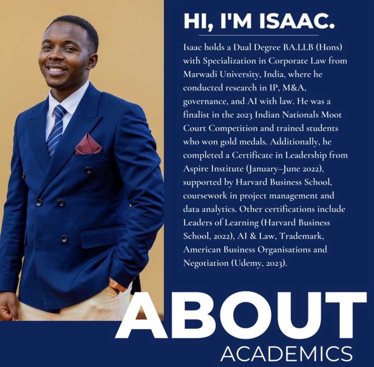 While pursuing a demanding Bachelor of Arts and Bachelor of Laws (Hons) degree, Isaac did not wait for clarity to be handed to him. He built it. Alongside his legal studies, he deliberately learned skills most curricula still treat as optional: personal branding, graphic design, social media sales, web design, public speaking, leadership education, and later, artificial intelligence.